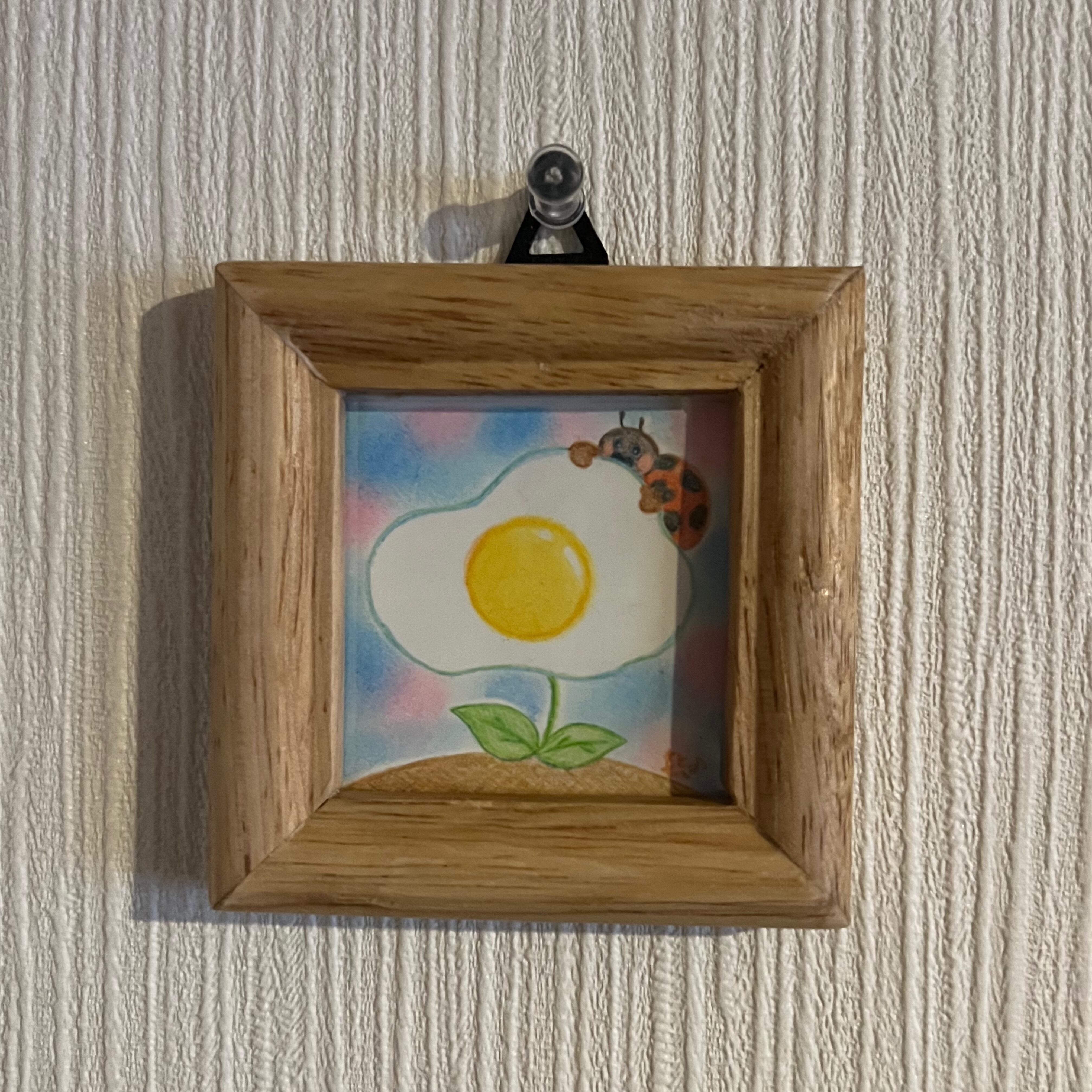 【サイズ等】7.8cm × 7.8cm(ケント紙・木枠付き・色鉛筆とクレヨン使用)