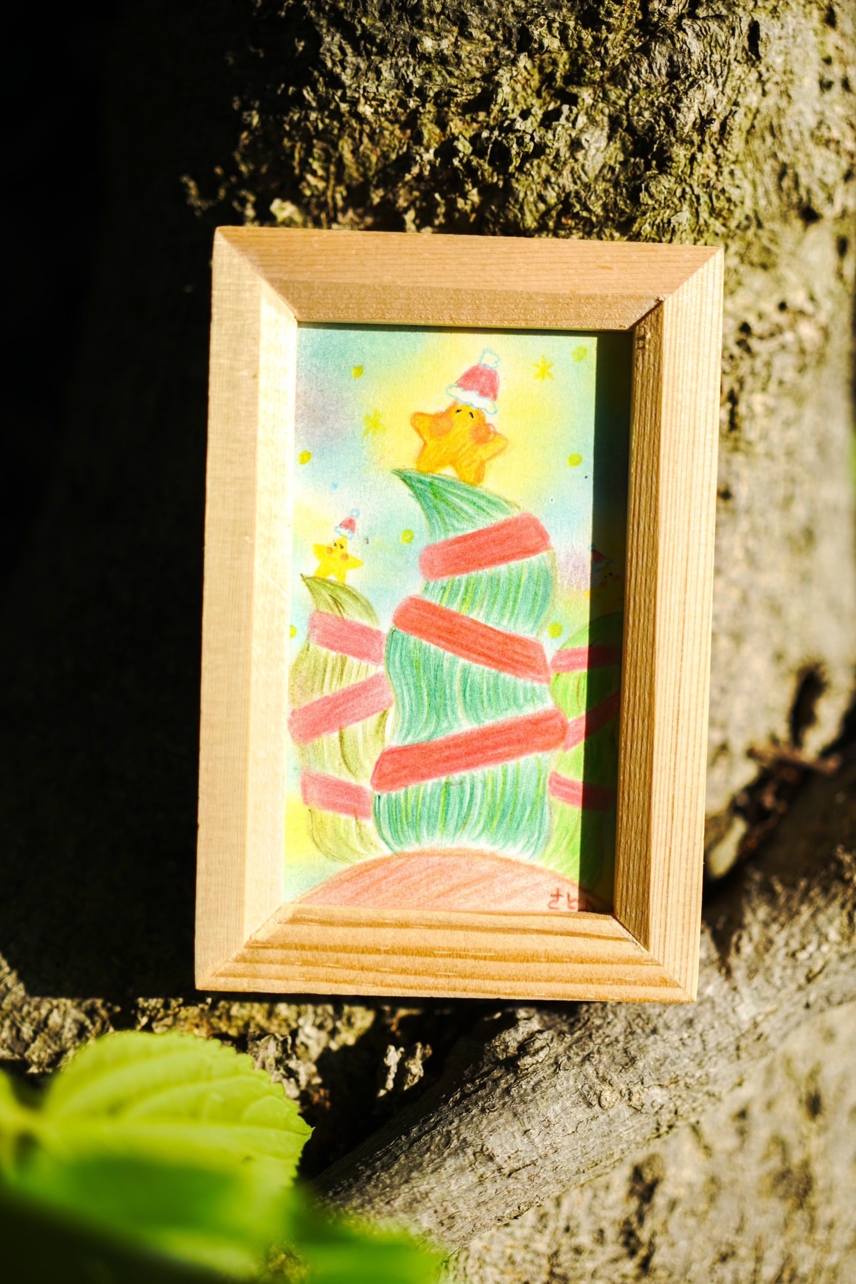 【サイズ等】5.8cm × 9.3cm(ケント紙・木枠付き・色鉛筆とクレヨン使用)